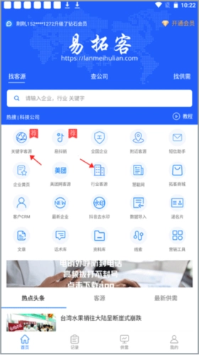 1、软件找资源的途径多种多样,我在这里重点介绍其中两种,分别是通过关键字获取的客源和依托行业渠道开发的客源。