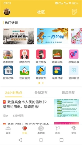 进入宜宾零距离首页后,点击页面左上角【头像图标】。