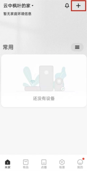 2、连接蓝牙后,打开米家,点击右上角+按钮。