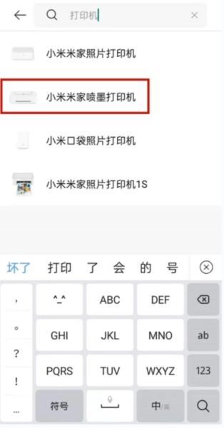 3、搜索框搜索打印机后,选择小米米家喷墨打印机。