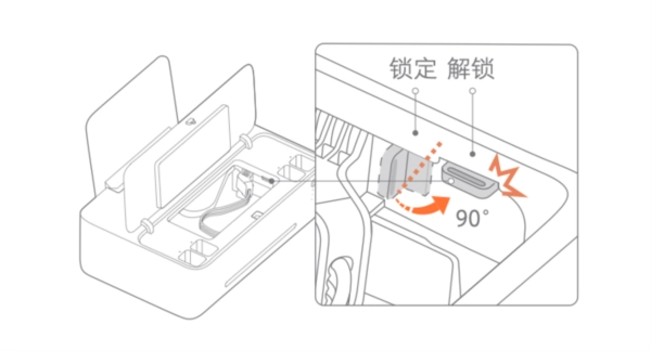 把打印头架的固定锁拨至水平位置,待听到“咔哒”声,即表示解锁成功。