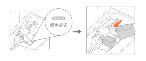 先找到打印头架底部的颜色标识,再把匹配的打印头插到对应的位置。