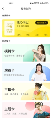 点击制作模卡,进入模卡板块;