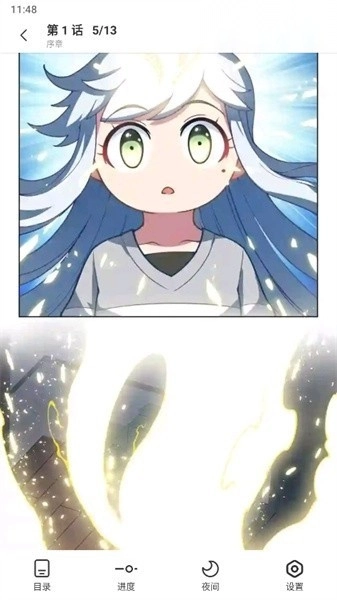 4、轻触屏幕中间位置即可唤出功能设置界面,在此可完成漫画收藏操作,也能打开漫画目录,切换夜间模式等功能。