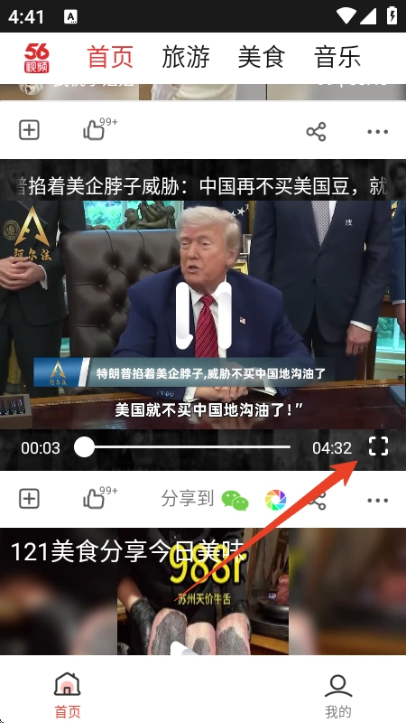 2、打开软件首页后,挑选一个感兴趣的视频,点击进入全屏播放模式