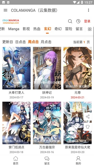 1、在本站完成colamanga漫画的安装后,进入软件首页(界面如图所示),首先映入眼帘的便是最近更新的内容与热门推荐板块。