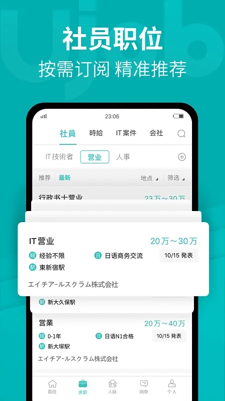 ujob日本招聘求职是一款专门面向在日华人的求职招聘应用。平台整合了日本各行业的岗位信息,提供智能岗位推荐、简历上传、在线沟通等实用功能,同时设有IT求人专区与人脉拓展板块。所有岗位均经过严格审核确保真实可靠,致力于帮助在日华人高效便捷地找到合适工作。