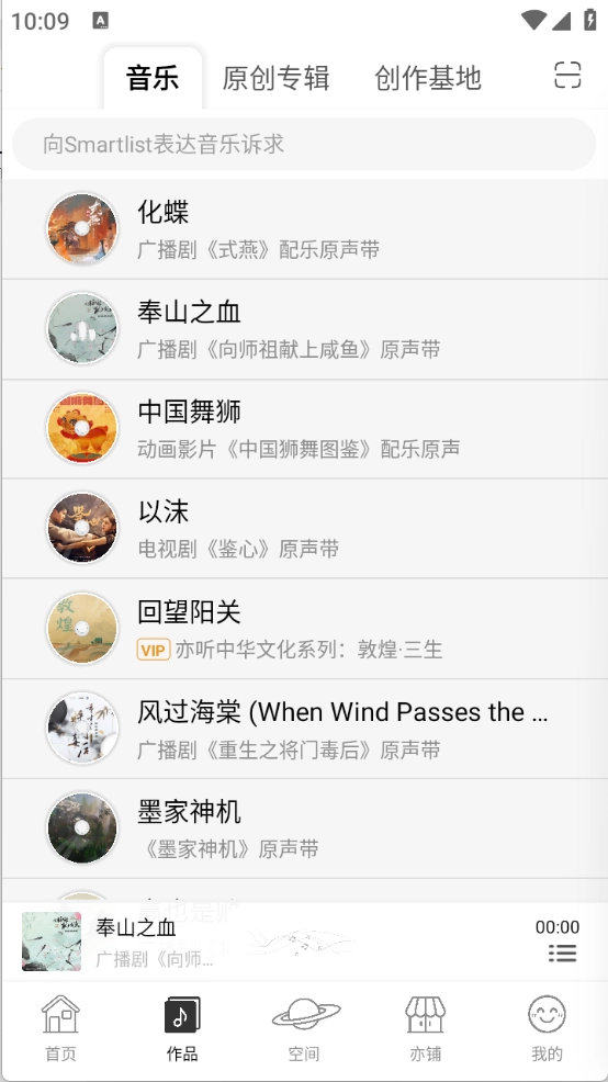 进入首页后,点击“作品”板块,即可畅享海量音乐曲库资源。