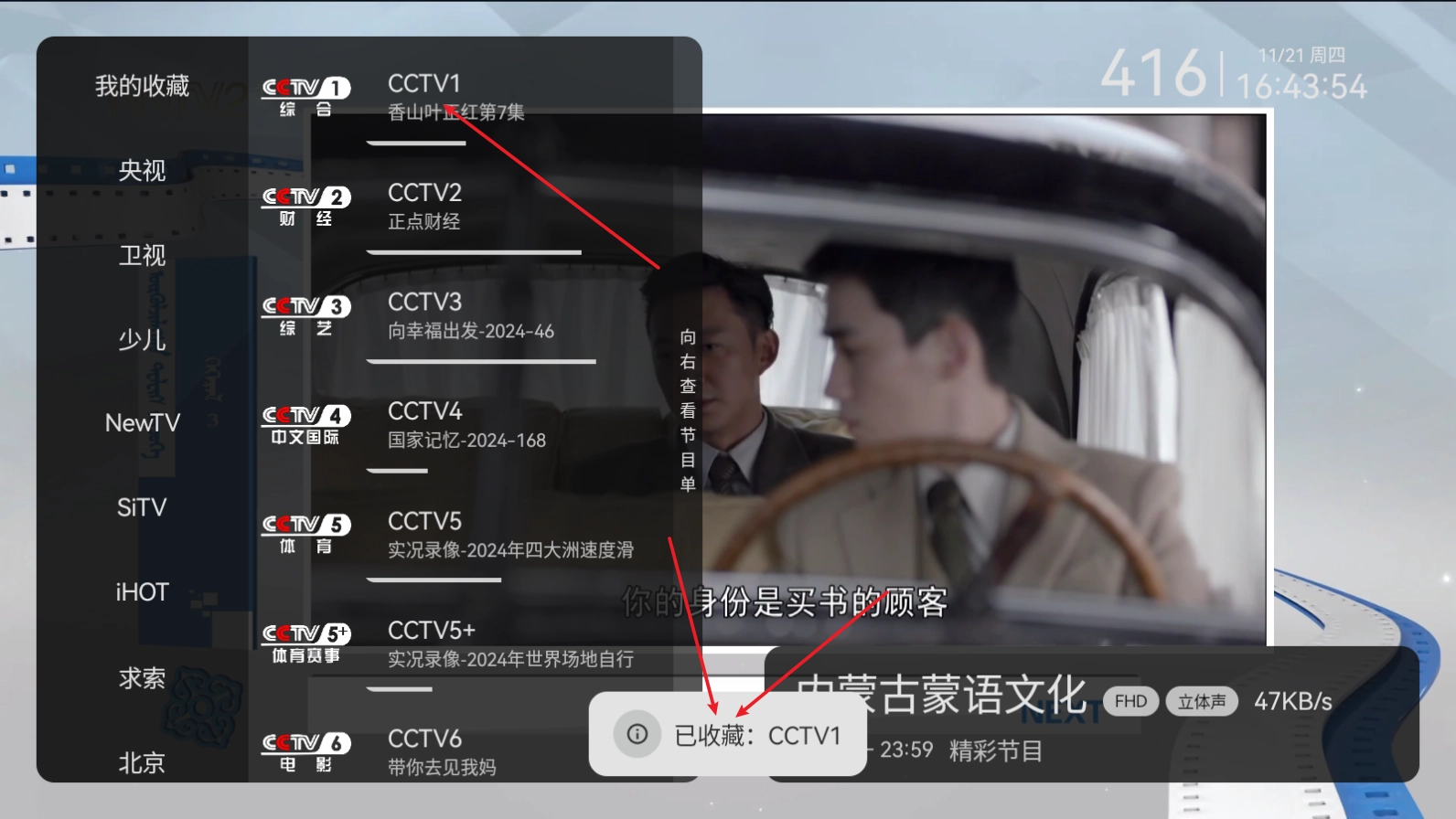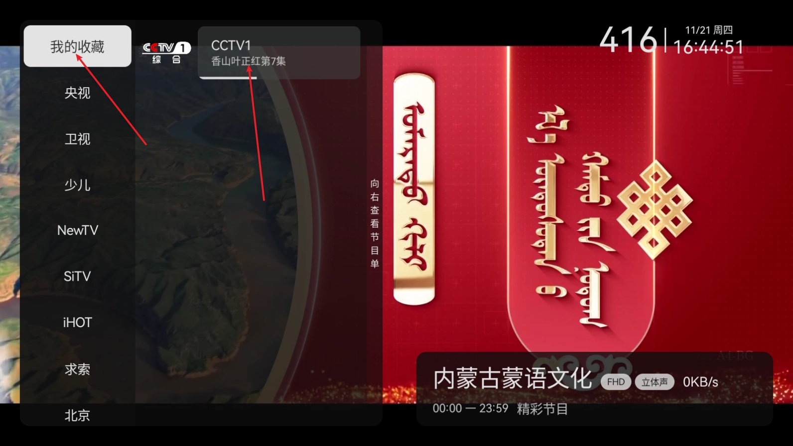 5、最后点击“我的收藏”,就能查看已收藏的目标频道了。