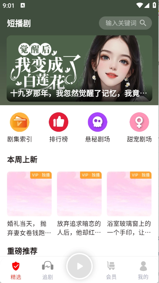 2、精选页面推进阿勒很多的短播剧资源类型。