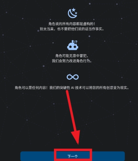 1、进入C.AI软件后,点击下方的开始