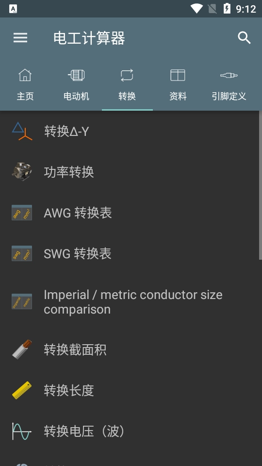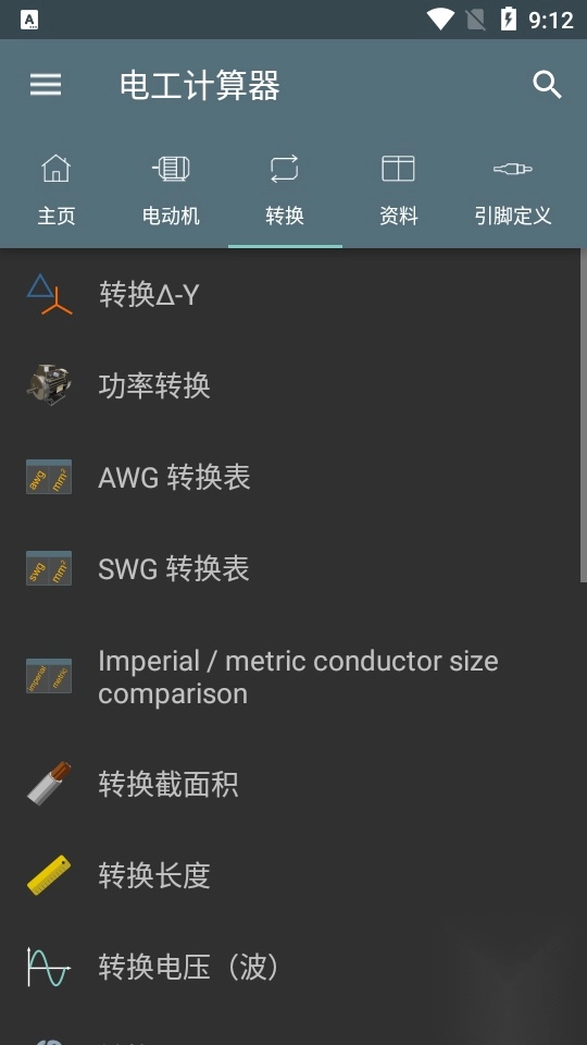电动机、转换、资源等分类:提供多种与电气行业相关的分类,方便用户查找和计算。