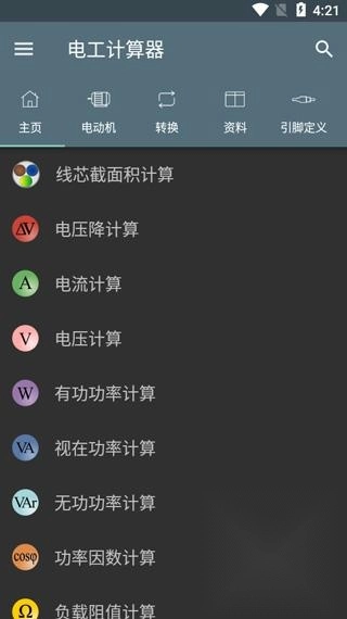 作为电气行业的优选工具,电工计算器除了具备基础计算功能外,还涵盖电动机、转换、资源等分类模块,同时提供资料查询服务,堪称电气工作者的得力帮手。