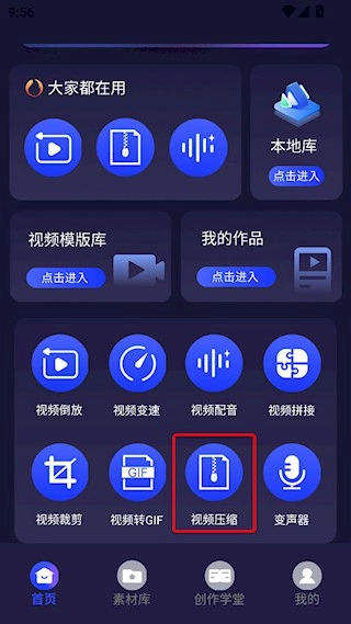 1、启动Kioni视频编辑大师,在主界面找到视频压缩功能选项,点击进入该功能页面