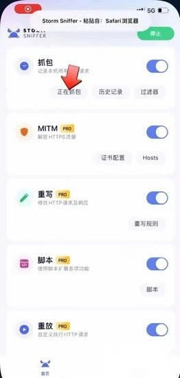 2、在首页,用户点击开启【抓包】
