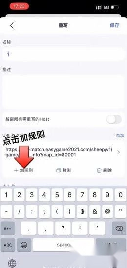 3、在获取到的抓包流程里,找到后缀是90016的地址,右滑将其添加到重写规则中,然后修改对应的url
