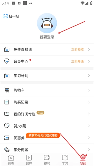 1、进入【我的】页面后,点击页面顶部的【我要登录】按钮。