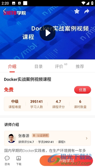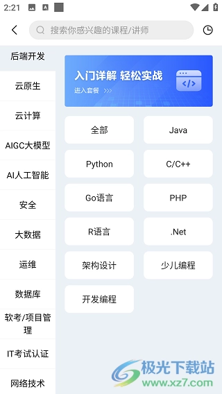 4、点击匹配的类型,接着在大量课程里挑选出心仪的一个,随后点击右下角的“开始学习”按钮。