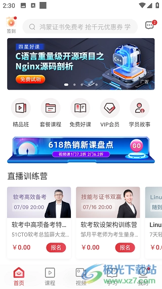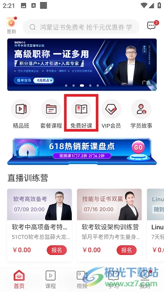2、找到首页上的“免费好课”并点击。