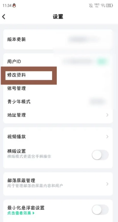 2、打开设置页面,点击修改资料选项。
