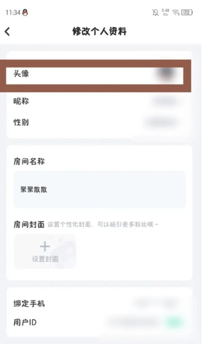 3、然后在修改个人资料页面,点击头像选项。