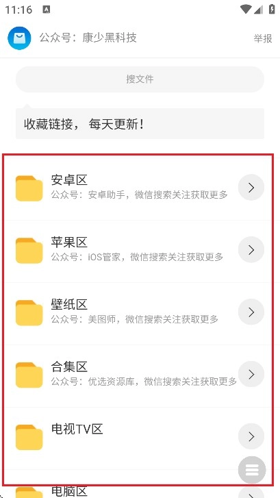 3、选择任意一个区进入,比如安卓区,进入后会看到里面又划分了多个专区,像影视、小说、工具、游戏、办公等类别都有对应的专区。