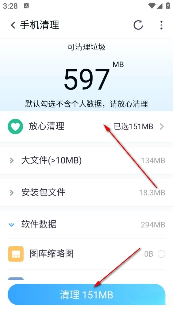 2、软件内支持一键清理手机各类垃圾文件,助力用户优化手机性能