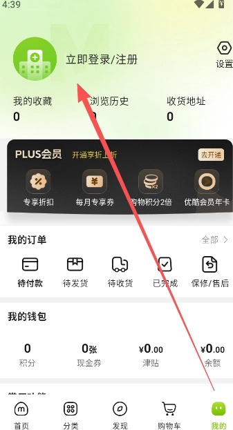 1、打开软件进入主界面后,找到“我的”页面并点击,然后选择“立即登录/注册”选项。