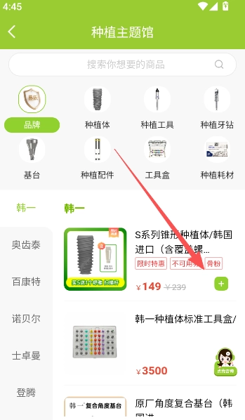 4、例如,要是本站小编对种牙方面比较关注,点击详情页就能看到不少相关商品,点击商品详情旁的+号就能进行购买。