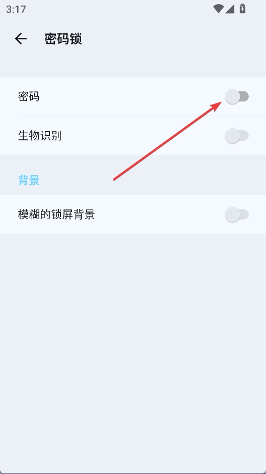 3、在密码锁中点击密码启用,设置手势密码即可