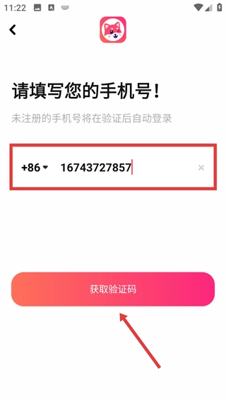 3、在手机号输入框中填写对应的号码,确认格式无误后,点击【获取验证码】按钮以获取验证信息。