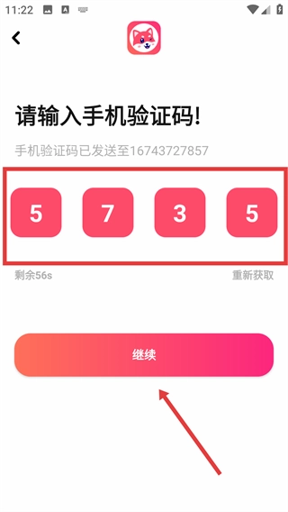 4、在验证码输入框中填写收到的数字,确认信息准确无误后,点击【继续】按钮以完成验证并推动流程继续进行。