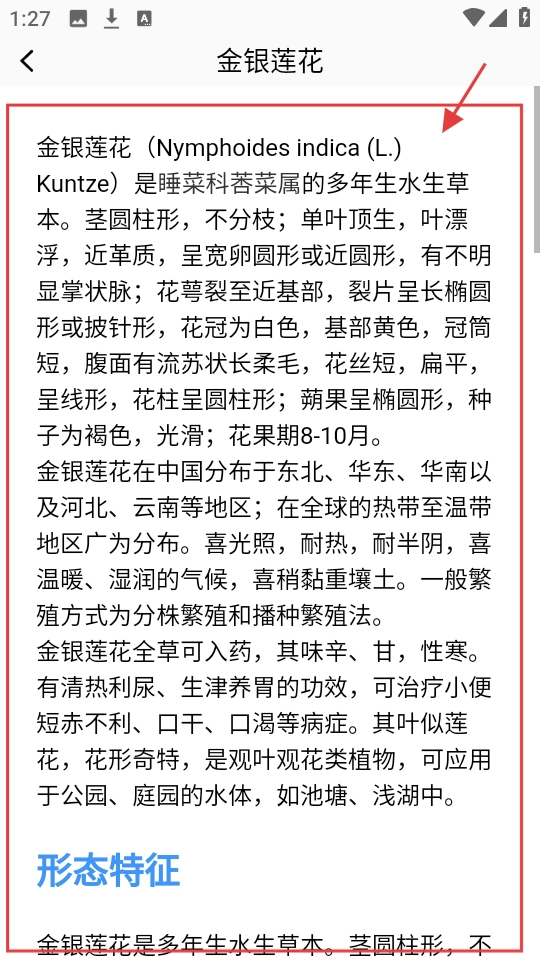 3、进入金银莲花的详情页面,能够查看它的形态特征、分布区域、药用价值等具体信息,从而对这种花有更深入的认识。
