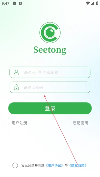 1、打开Seetong,点击【请输入手机号】。