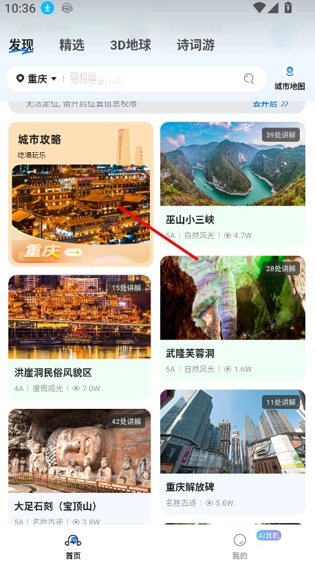 用户既能按城市浏览景点列表,也能搜索感兴趣的景点来获取更多详情。当您身处景区时,还可以选择开启自动导游模式。