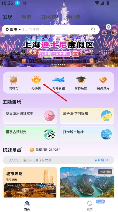 3、在城市攻略页面里找到“必游榜”板块,点击该板块即可查看热门景点的列表。