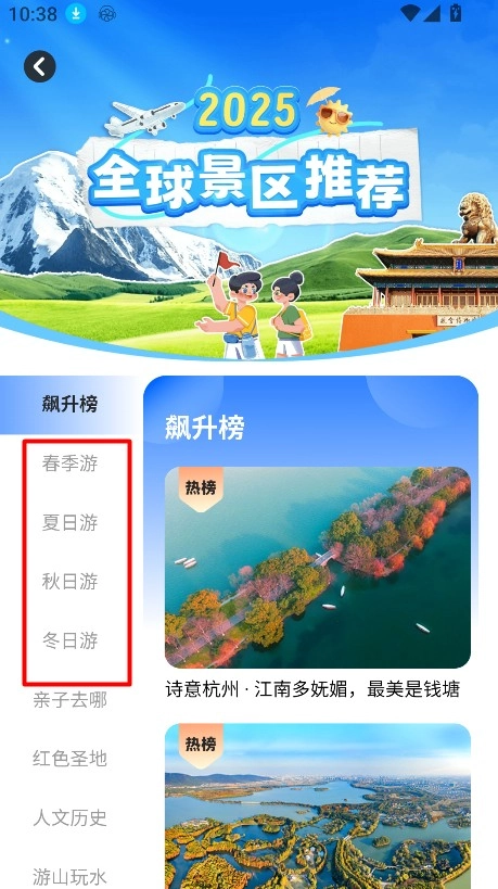 4、借助全球景区推荐功能,可浏览适合春夏秋冬不同季节游玩的景区。