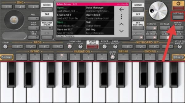 1、点击电子琴界面右上角的【SETTING】按钮,即可进入设置页面。