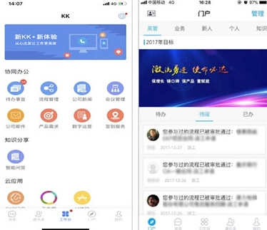 以企业连接与消息沟通为核心,融合企业组织架构与移动办公功能,为企业打造统一的移动入口并提供优质的用户体验