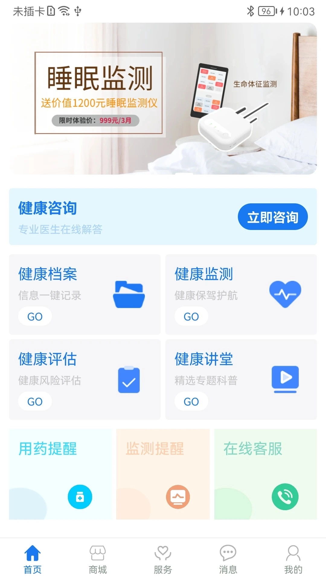 2、返回首页后找到健康咨询板块,点击“立即咨询”按钮即可开启问诊流程。