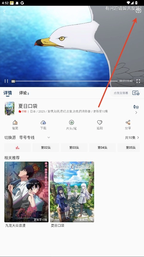 2.点击右上角TV投屏。