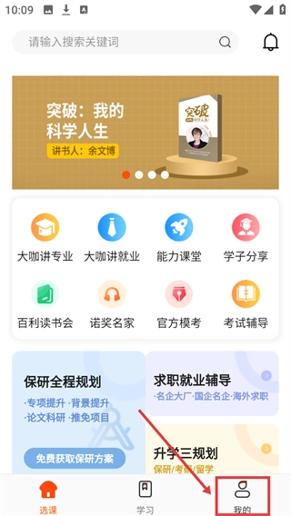 在【选课】界面中,点击底部导航栏里的【我的】选项,就能进入个人中心页面。