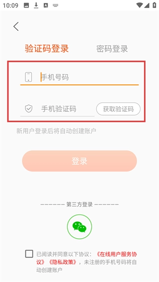 4、把【手机号码】和【手机验证码】填写完整,勾选对应的相关协议,接着点击【登录】按钮,就能完成账号的登录流程了。