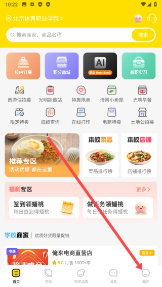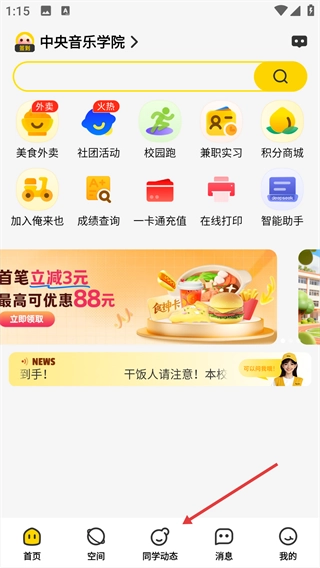 1、精准校园定位:系统可自动识别用户所在学校,进而推送契合该校学生实际需求的服务,像校内订餐、专属论坛等均包含在内。