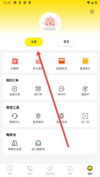 2、进入我的页面以后,点击【注册】