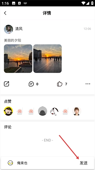 4、输入操作结束后,点击右侧的【发送】按钮,即可完成评论的发布流程。