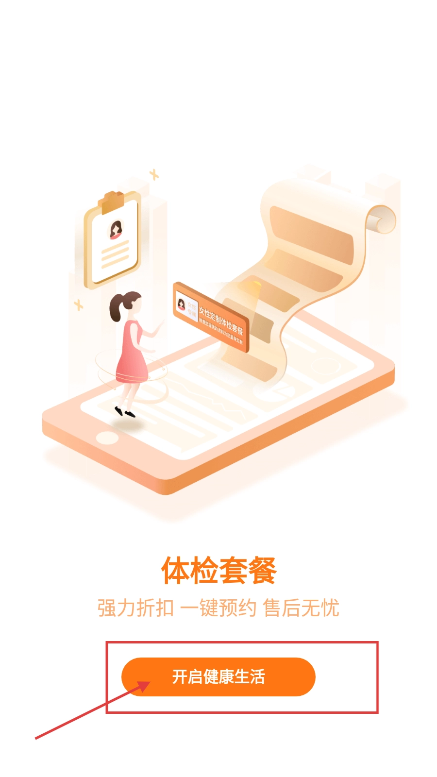 1、点击【开启健康生活】按钮,进入健康类主界面。