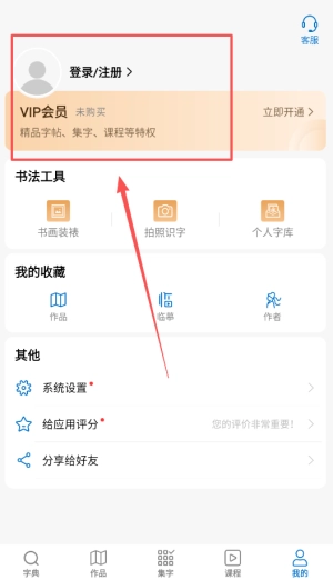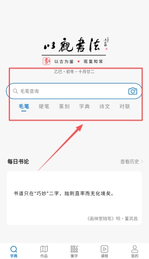 1、首先下载并安装观书法App,完成注册后进入主界面,用户能便捷找到汉字查询与书法展示功能,获取丰富的书法资源。