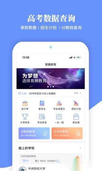《育腾高考志愿》是一款专为云南高考学子打造的志愿填报大数据服务平台,整合了全国2900余所高校506个专业近三年的录取数据,借助云计算技术,助力学生与家长挑选理想院校完成高考志愿填报。平台秉持“助你高考考得好,更能报得好”的理念,帮助考生充分利用分数,不浪费每一分上大学的机会。