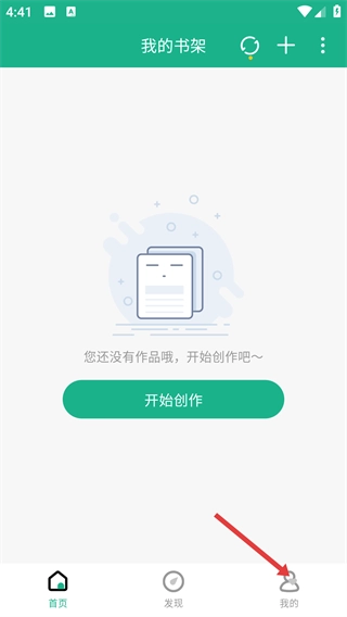 1、在【我的书架】界面,点击底部的【我的】按钮,即可进入个人中心页面。